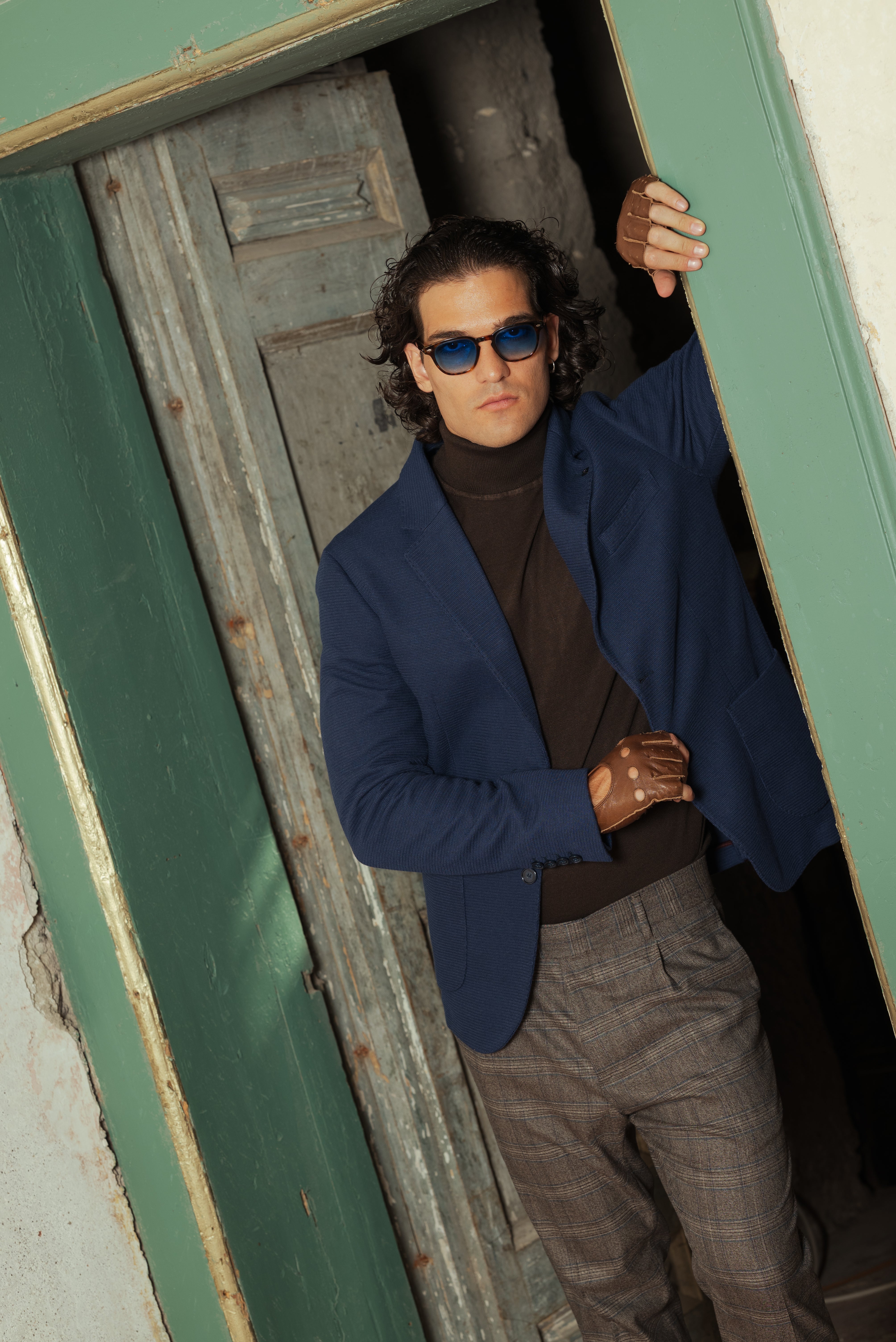Giacca monopetto a microfantasia in misto lana – Karl Mommoo