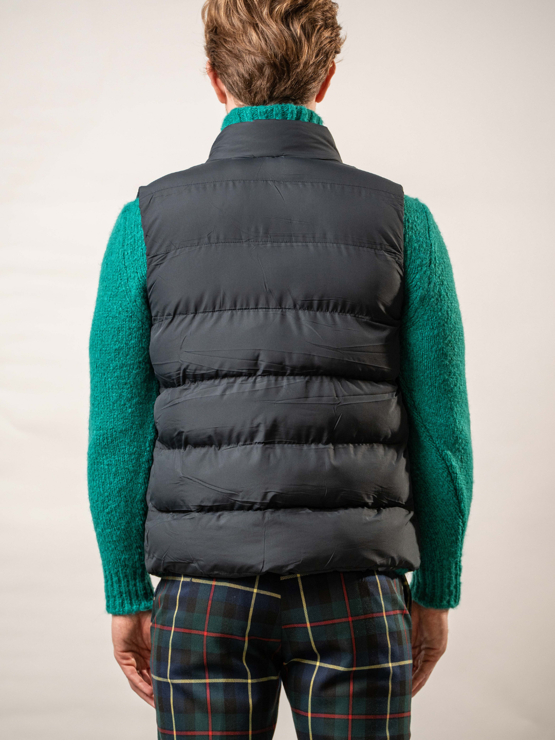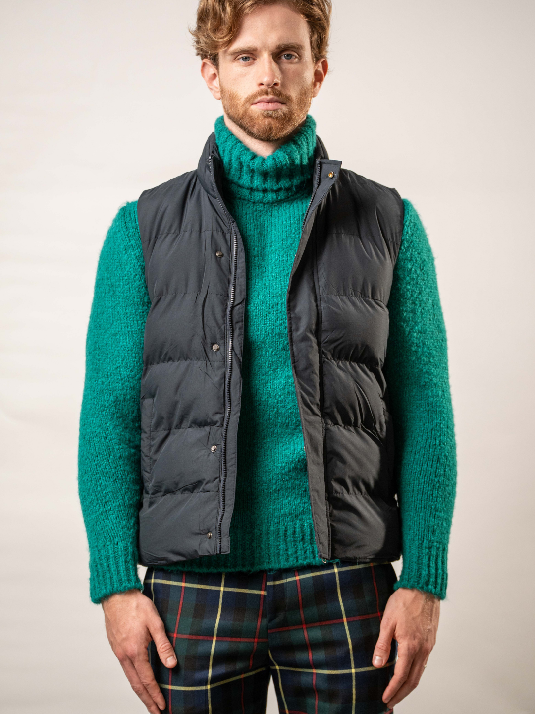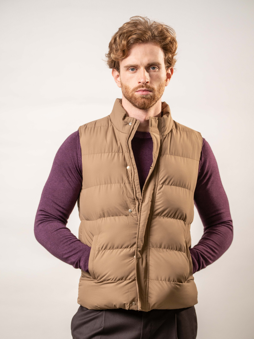 Realizzato in tessuto tecnico imbottito, unisce leggerezza e calore grazie all’imbottitura trapuntata che garantisce comfort e libertà di movimento. Le tasche laterali e la chiusura con bottoni automatici completano un design pulito e contemporaneo.