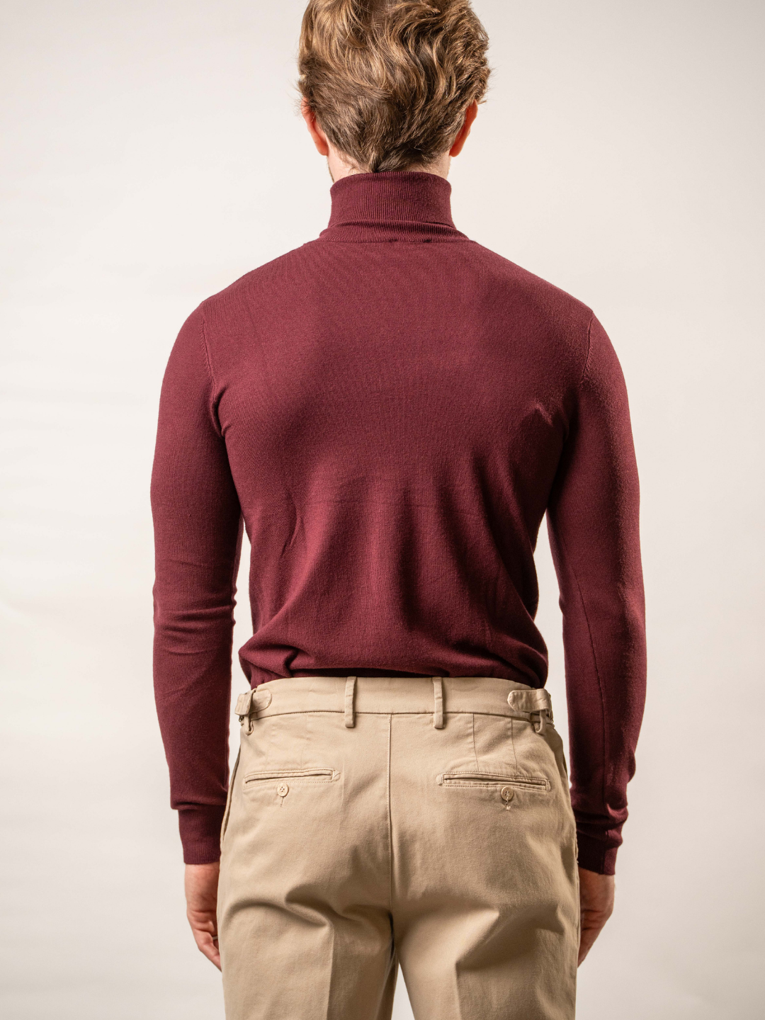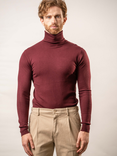Raffinato e minimal, il dolcevita Karl Mommoo bordeaux è un capo essenziale del guardaroba maschile.