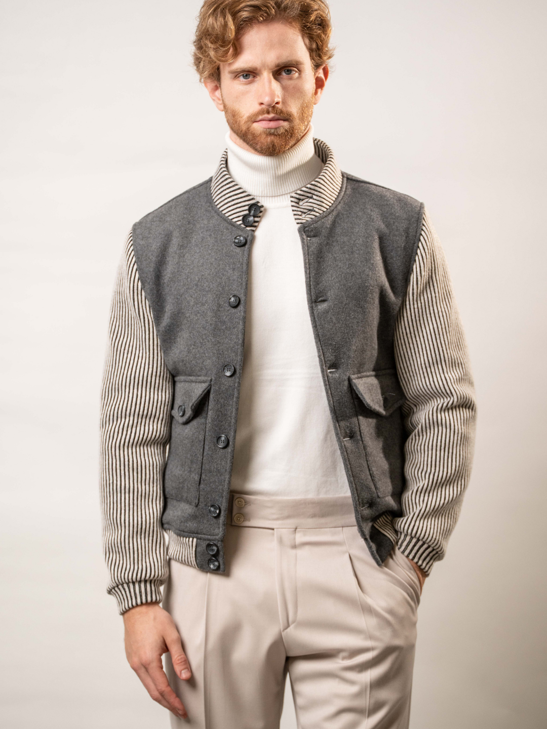 Il giubbotto misto lana Karl Mommoo combina l’eleganza del panno con dettagli funzionali e moderni. Il taglio d’ispirazione retrò e le tasche applicate donano carattere, mentre il tessuto caldo e strutturato garantisce comfort e stile in ogni occasione.