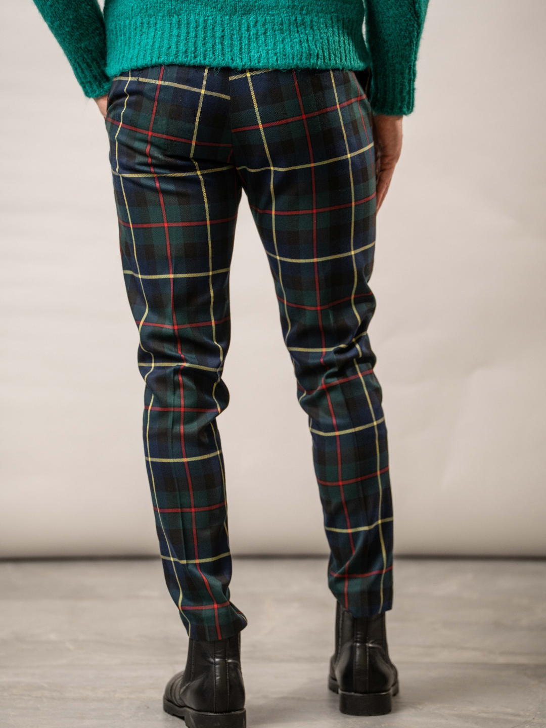 Il pantalone Karl Mommoo in fantasia tartan dona carattere e personalità a ogni look grazie alla sua trama a quadri nei toni blu, rossi e gialli. Realizzato in tessuto morbido e confortevole, è perfetto per la stagione autunno/inverno.